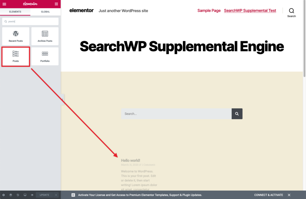 Below the Search Form Widget, add a Posts Widget: