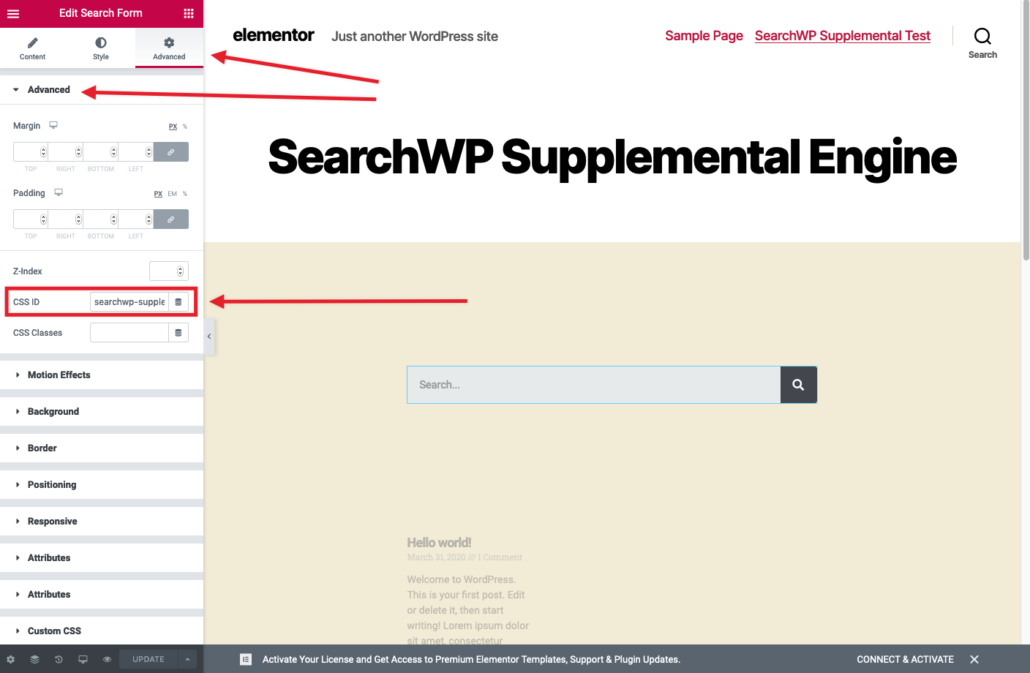 IMPORTANT: Edit the CSS ID in the Advanced pane for the Search Form and give it a unique ID. For this article we will use searchwp-supplemental-form: